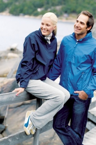 Unisex vindjakke.Avtagbar hette i kragen.Nettingfôr.Elastisk regulering.